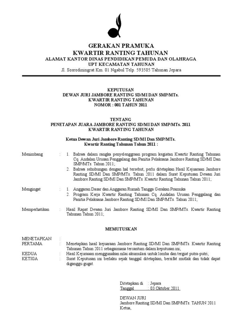 Langkah-langkah Membuat SK Lomba Pramuka Tingkat Kwarran